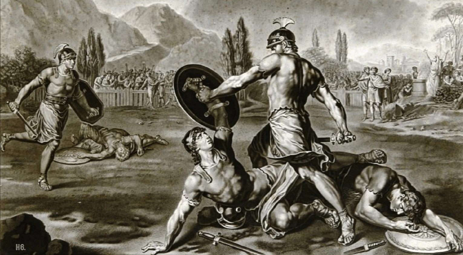 Wenn es zum Nahkampf kam, stürzte sich der Legionär nicht kopfüber auf den Feind. Stattdessen warf er seinen Speer in einigem Abstand, um die Formation des Feindes zu brechen. Dann zog er sein Schwert und schützte sich im Kampf mit einem großen Schild.