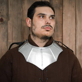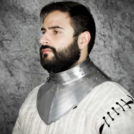 Die Halsberge | Kragenplatte schützte den Hals und den Nacken vor Hieben und Stichen. An die Kragenplatte wurden oft die Schulterpanzer angeschlossen.