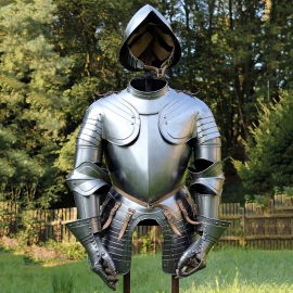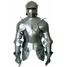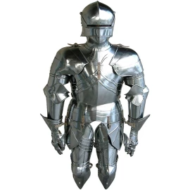 Plattenrüstung war der Höhepunkt auf dem Gebiet des persönlichen Schutzes im Mittelalter. Es bot einen sehr guten Schutz gegen Hieb- und Schusswaffen. Sie bestand aus überlappenden Platten und hatte verschiedene Teile. Ihr Nachteil war das relativ hohe Gewicht und eine gewisse Unbeholfenheit. Daher wurde die sogenannte Halbrüstung immer beliebter.