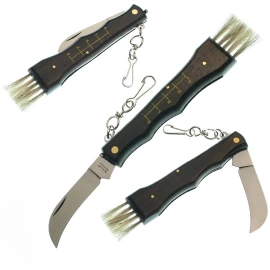 Jeder Mensch, der gern in die Pilze geht, sollte ein spezielles Pilzmesser besitzen. Dieses kleinere Messer hat eine leicht gebogene Klinge, mit der man Pilze reinigt und sie beim Boden gut abschneiden kann. Die Klinge ist i.d.R. aus rostfreiem Stahl gefertigt, ist scharf und stumpft nicht schnell ab. Ein Pilzmesser kann auch mit einem Pinsel versehen sein, mit dem man Nadeln und Erde leicht und empfindlich vom Pilz besteigen kann. Manche Pilzmesser in unserem Angebot haben auch ein Maßstab, damit Sie Ihren Fund im Wald gleich messen können. Dank einem Karabinerhaken oder einer Hülle können Sie Ihr Messer an dem Gürtel aufgehängt tragen.