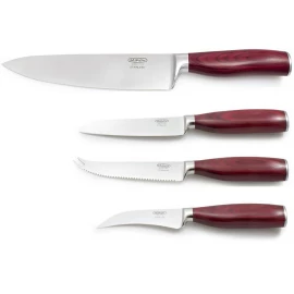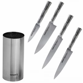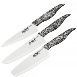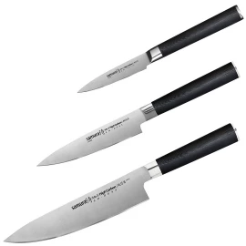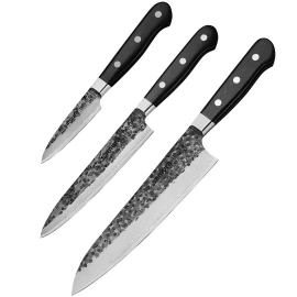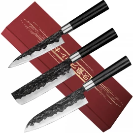 Das Set von japanischen Messern besteht aus den Messern Sashimi, Deba und Nakiri. Ihre Klingen sind aus gehärtetem Stahl hergestellt, der aber nicht rostfrei ist. Ihr Vorteil stellt eine langfristige Messerschneide dar. Die Klinge kann man auch sehr schnell und leicht schleifen. Die Handgriffe von diesen Messern sind aus Magnolienholz angefertigt. Beide Sets können Sie natürlich um andere Ihren zwecken passende Messer ergänzen.