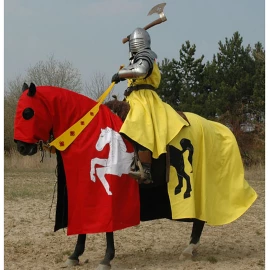Nehmen Sie oft an historischen Veranstaltungen teil, bei denen Ausritte oder Pferdeturniere stattfinden? Oder möchten Sie einfach Ihr Pferd in eine Decke wickeln, deren Motiv von alten historischen Symbolen inspiriert ist? Dann sind Sie bei uns genau richtig! Hier bieten wir viele Arten von Schabracken und Pferdedecken an. Wählen Sie die passende Variante für Ihr Pferd.
