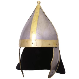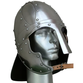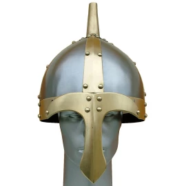 Der Spangenhelm war der meistverbreitete Helmtypus der Spätantike und des Frühmittelalters in Europa. Spangenhelme bestehen aus einem metallenen Stirnreif, auf dem 4-6 oder auch mehr Metallleisten (Spangen) angebracht sind, die in konischer Wölbung in einer Schädelplatte, Helmspitze oder Helmzapfen zusammenlaufen. Zwischen den Leisten befinden sich Metallplatten (Segmente), die auch mit Silber- oder Bronzeblech plattiert sein können. Der Stirnreif besitzt manchmal bogige Brauenausschnitte oder sogar einen Nasenschutz (Nasal). Spangenhelme mit Nasal werden bisweilen als Nasalhelm bezeichnet, obwohl man darunter streng genommen einen anderen Helmtypus versteht. Spangenhelme sind typischerweise mit Wangenklappen und einem Nackenschutz aus Kettengeflecht versehen.