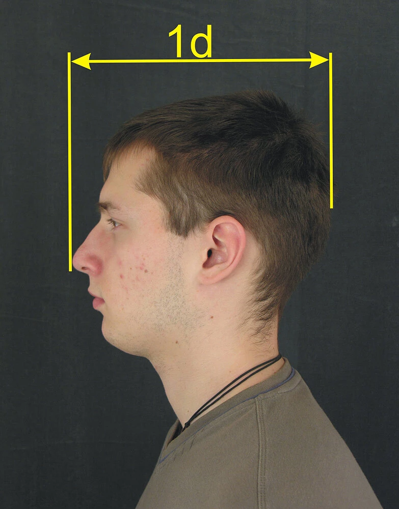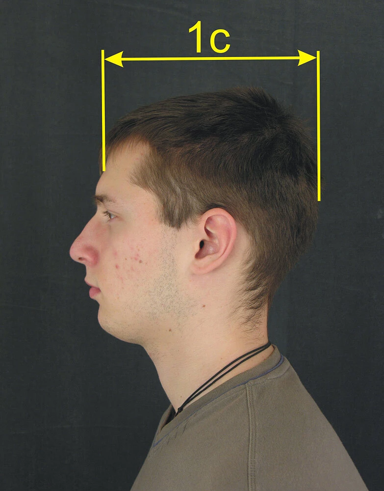 Kopftiefe: Nasenspitze zu Hinterkopf, gerade gemessen