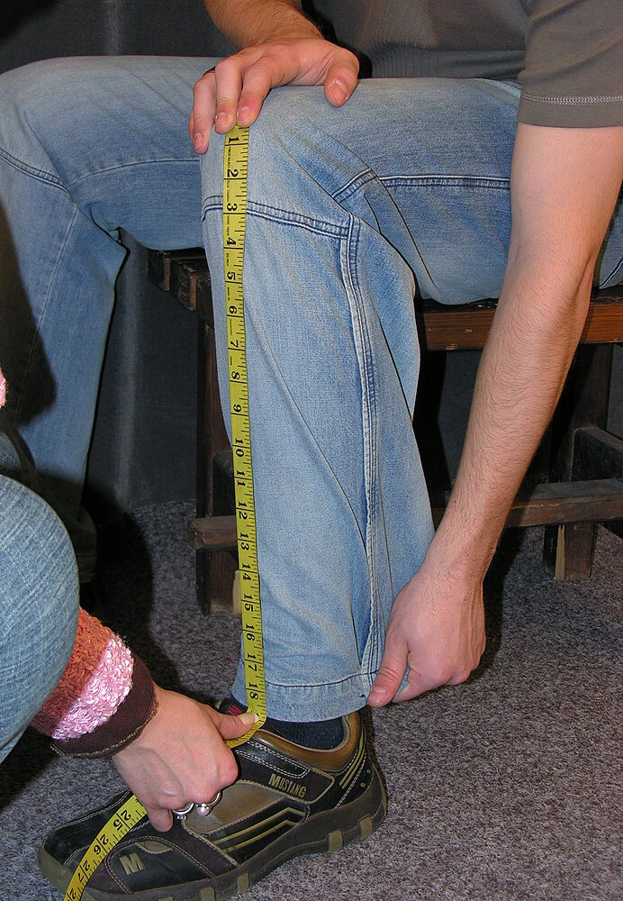 Schienbeinlänge - Mitte Kniescheibe bis Fußknöchel im Sitzen gemessen