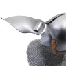 Dieser Helm stellt eine Rekonstruktion nach einem Fund um 1370 dar. Das Original befindet sich im Valeria Museum in Sitten (Schweiz). Diese Art von Helmen entwickelte sich aus der Beckenhaube (ohne Visier) während des frühen 14. Jahrhunderts. Sein Visier ist mit einem Scharnier an der vorderen Mitte der Helmglocke befestigt und ist abnehmbar. Weitere Produktinformationen ...