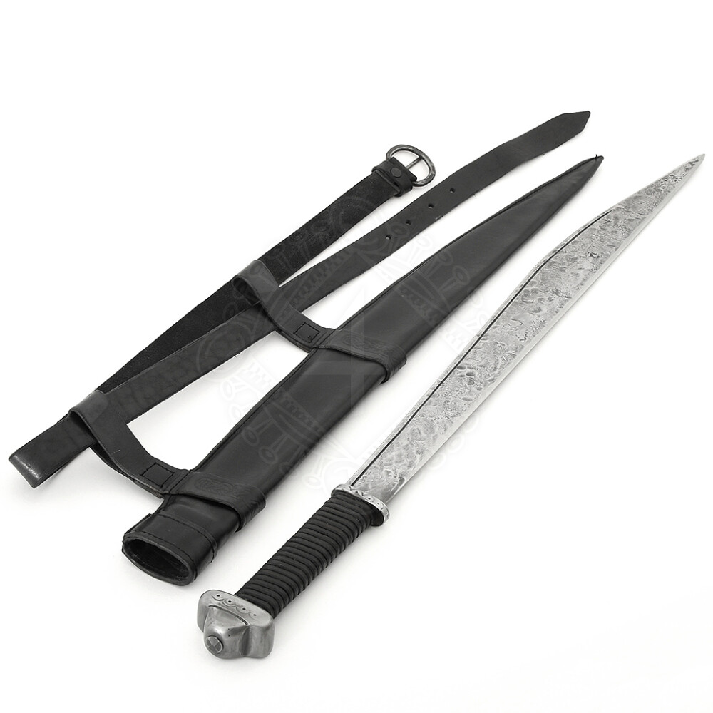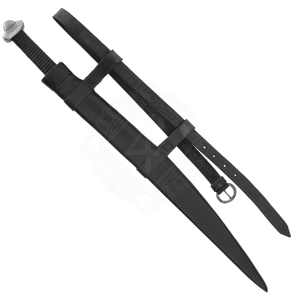 Die Scheide ist so konstruiert dass man den Skramasax in ca. horizontaler Position tragen kann. Sie wird genau nach Maß hergestellt, so dass sie genug eng ist, dass der Skramasax nicht herausrutscht. Das Ausrutschen kann im Laufe der Zeit auftreten. In diesem Fall kann man die Scheide z.B. mit Lederband oder Schnur an der Kehle fest umbinden. Weitere Produktinformationen ...
