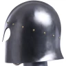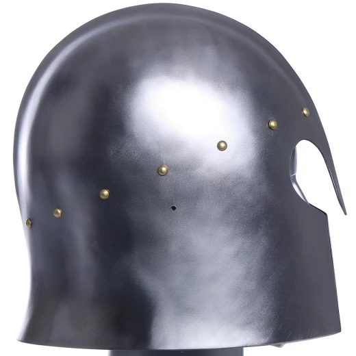 1xReplik eines italienischen Helms (Übergang von Barbute zu Schaller), die auf dem sehr attraktiven A75 Helm im 'korinthischen' Stil (Mailand, Italien ca. 1455) basiert. Der Originalhelm ist im Rahmen der Wallace Sammlung in London aufbewahrt. Von Anfang des fünfzehnten Jahrhunderts wurden italienische Künstler aller Art, einschließlich Waffenschmiede und Rüstungsbauer, mit der Kultur des antiken Griechenlands und Roms fasziniert. Es ist diese Wiederbelebung des Interesses an der klassischen Welt, die die Renaissance zur Welt brachte, die nicht nur in der Malerei, in der Bildhauerkunst und in der Literatur, sondern auch in der Kunst der Waffen- und Rüstschmieden ausgedrückt wurde. Weitere Produktinformationen ...
