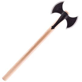 - Die Axt ist am Schaft mit einem Keil und einem durchgehendem Stift gesichert