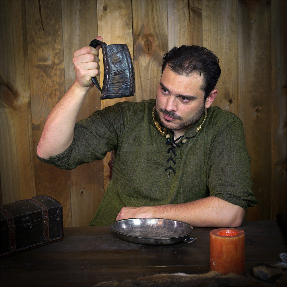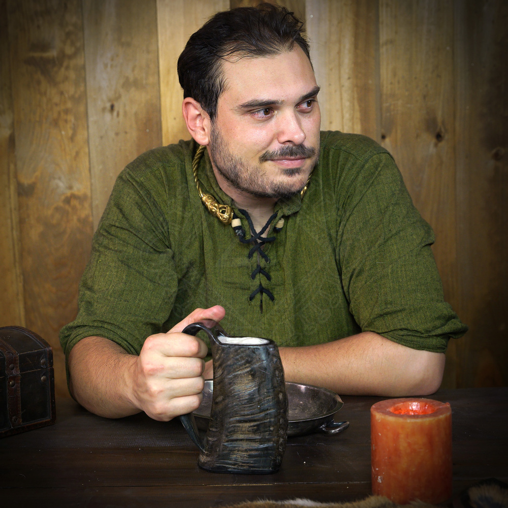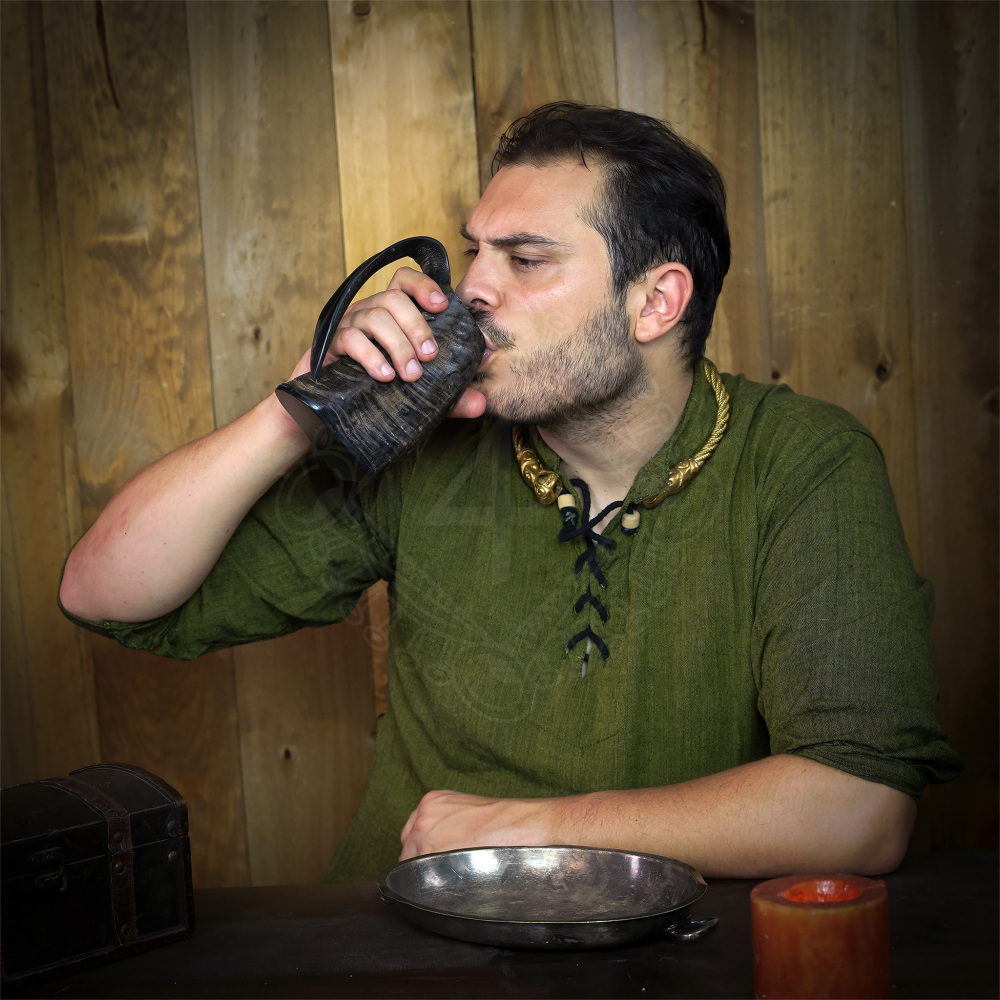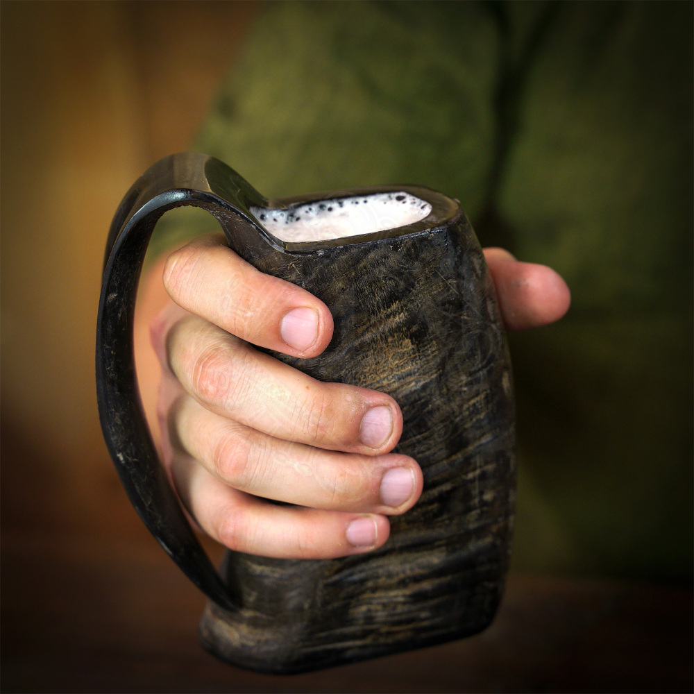 Zeigen Sie Ihren Kumpeln in Ihrer Wikinger-, LARP- oder SCA-Gruppe, wie ein richtiger Horn Bierkrug aussehen soll. Es nimmt Ca. 200 – 400ml auf. Sie können mit ihm Ihren Durst effektiv und beeindruckend löschen, wenn Sie mit dem Schlemmen fertig sind. Überdies kann der einzigartige Bierkrug zu einem schönen Schaustück in Ihrer Vitrine werden. Der Krug ist mit einem polierten Holzboden versehen. Weitere Produktinformationen ...