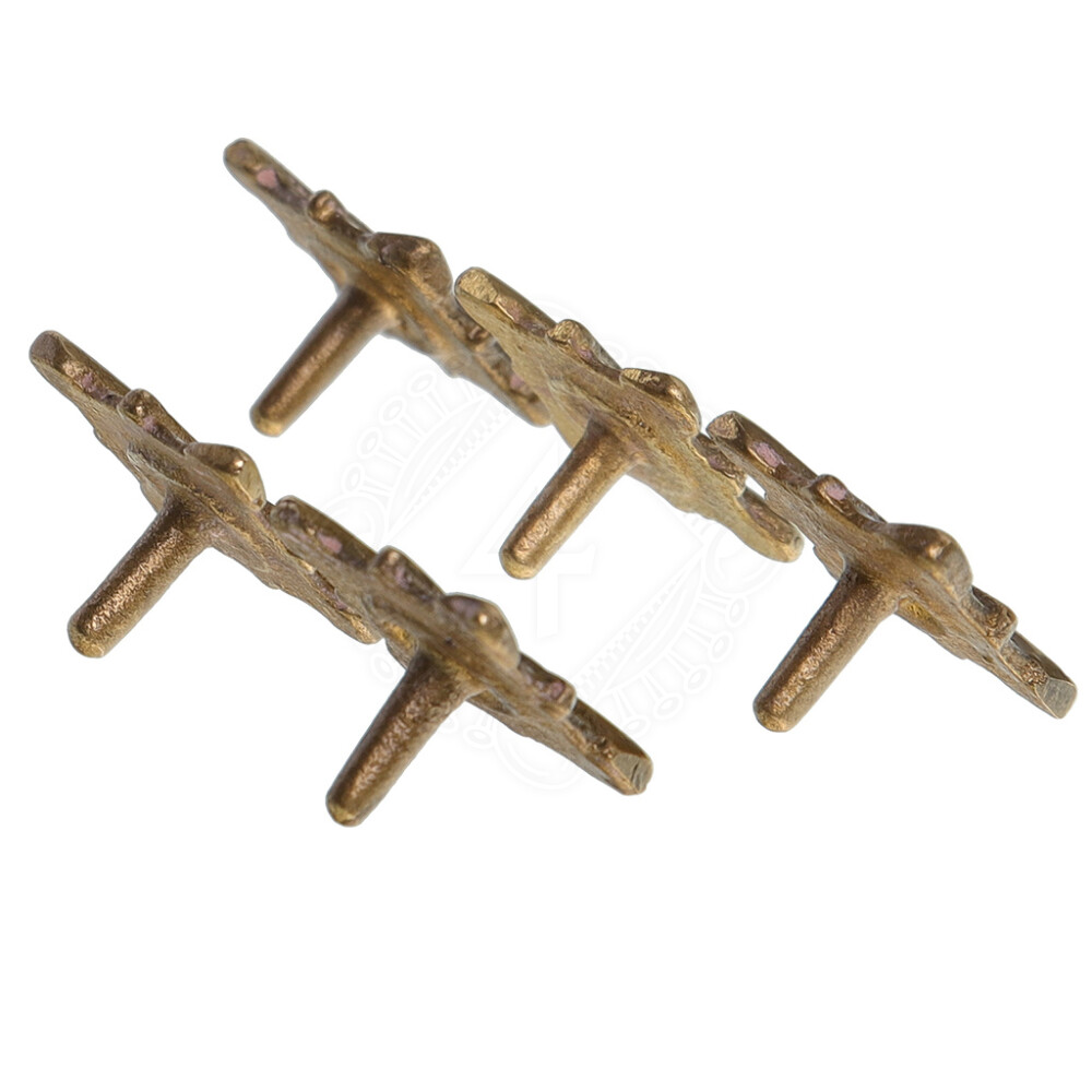 Dies ist ein Satz von fünf mittelalterlichen Gürtelknöpfen bzw. Gürtelbeschlägen. Sie sind aus massivem Messing gegossen und können Ihre Gürtel, Gürteltaschen und andere Lederausstattung schmücken. Zusätzliches Zubehör zur Befestigung ist im Lieferumfang nicht enthalten. Weitere Produktinformationen ...
