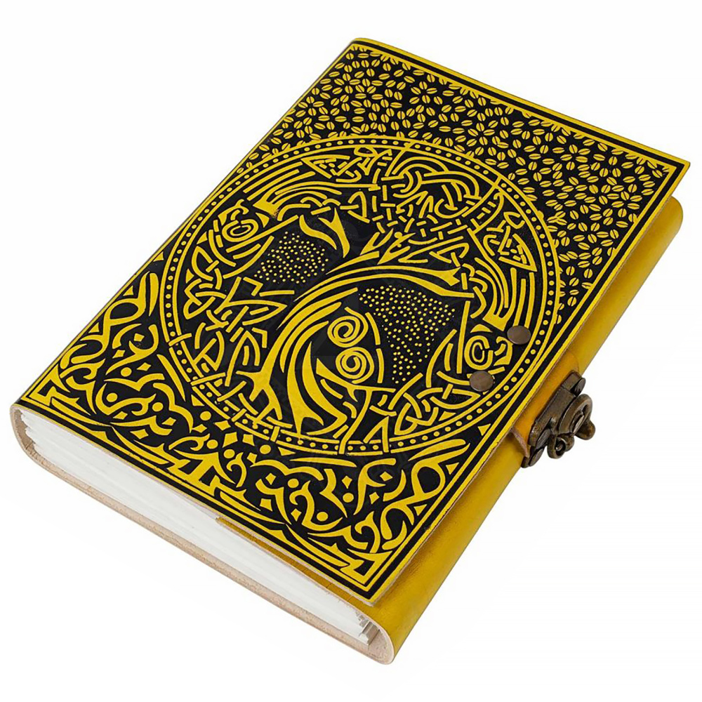 Erwecke die uralte Weisheit in dir und halte deine Gedanken in diesem einzigartigen Leder-Tagebuch fest. Sein Einband in auffälligem Gelb wird von einer detailreichen Prägung des nordischen Weltenbaums Yggdrasil geschmückt, die durch kontrastierendes Schwarz hervorgehoben wird. Dies ist nicht nur ein Notizbuch, sondern ein mächtiges Artefakt, das deine Ideen, Träume und Geschichten bewachen wird. Ein Metallverschluss an der Seite des Buches stellt sicher, dass deine Geheimnisse sicher verwahrt bleiben. Weitere Produktinformationen ...