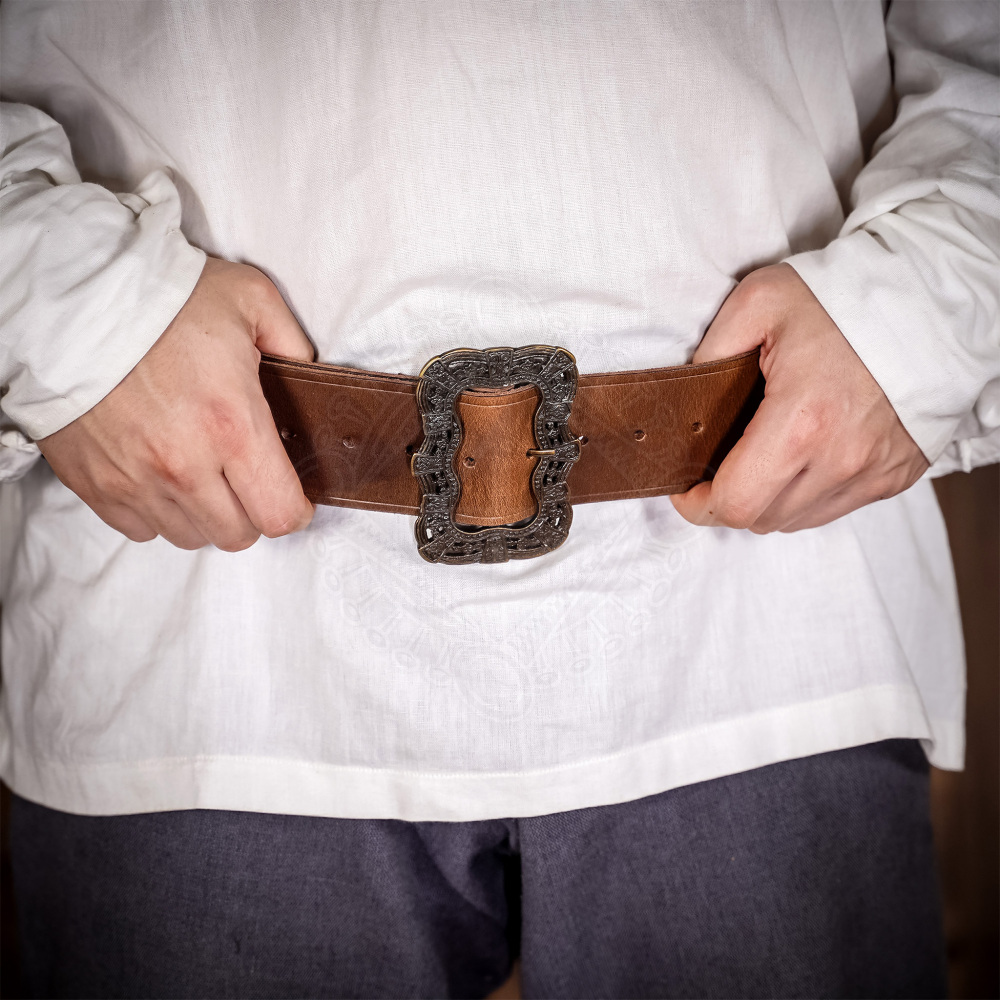 2xSuchst du nach dem einen perfekten Accessoire, das dein Kostüm definiert und sofort alle Blicke auf sich zieht? Ob du an Bord eines Piratenschiffs gehst oder einen mittelalterlichen Markt besuchst, dieser breite Ledergürtel ist ein Volltreffer. Sein dominierendes Merkmal ist die prächtige, massive und reich verzierte Schnalle aus patiniertem Messing, die für sich genommen schon ein Schmuckstück ist. Der Gürtel ist aus ehrlichem, 6 cm breitem Rindsleder gefertigt, das robust genug ist, um einen Säbel oder eine Tasche zu tragen, und gleichzeitig elegant genug, um ein adliges Gewand zu umschließen. Dieses ikonische Design ist von der Welt des Films und der Geschichte inspiriert und bereit, zum Stolz deiner Ausrüstung zu werden. Weitere Produktinformationen ...