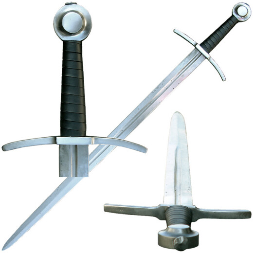 Die Schaukampfversion von diesem Schwert hat eine Schlagkante von 2-3mm und eine abgerundete Klingenspitze. Ein Schwert mit diesen Eigenschaften kann zum Schaukampf verwendet werden.