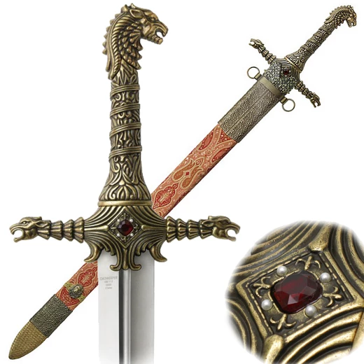 Diese von Hand gefertigte Nachbildung ist eine offiziell lizensierte, aufwändig gearbeitete Reproduktion des echten Requisits aus der epischen HBO Fantasy-TV-Dramaserie Game of Thrones®. Dieses Sammlerstück wurde mit größter Liebe zum Detail gefertigt und es wurde keine Mühe gescheut, um alle Besonderheiten des originalen Requisits möglichst detailgetreu zu replizieren. Jede Schwertscheide wird samt passendem Schwertgürtel und Echtheitszertifikat geliefert.