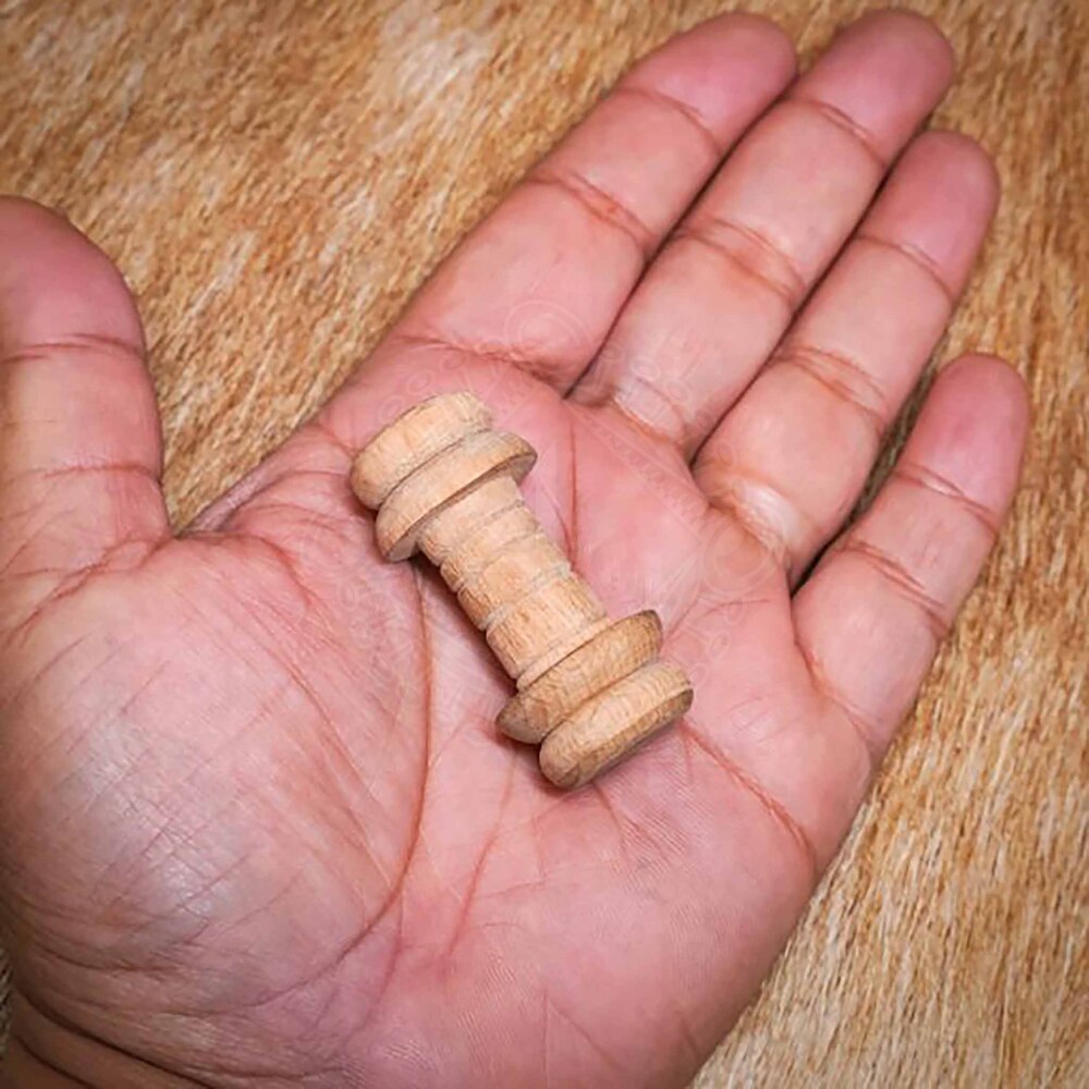 Ob du eine erfahrene Näherin, ein begeisterter Lagerteilnehmer, der seine Ausrüstung repariert, oder einfach ein Liebhaber traditioneller Handwerkskunst bist, diese hölzerne Garnspule wird dir hervorragende Dienste leisten. Sie ist leicht, langlebig und ihre Form ist so konzipiert, dass das Garn nicht abrutscht. Die glatt bearbeitete Oberfläche garantiert, dass selbst der feinste Faden nicht hängen bleibt. Dank der zwei verfügbaren Größen kannst du genau die auswählen, die deinen Bedürfnissen entspricht – die kleinere für feine Reparaturen und dünne Fäden, die größere für voluminösere Garne oder Schnüre.