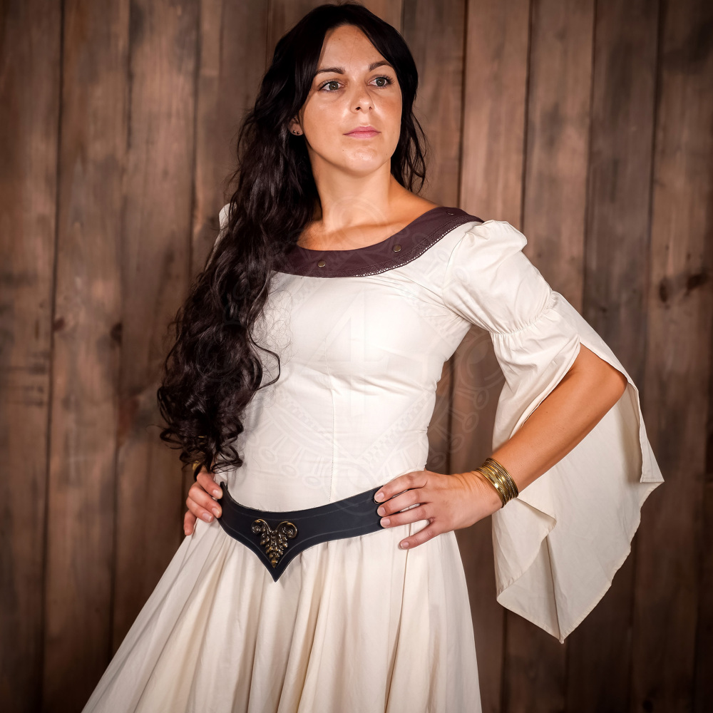Suchst du ein Accessoire, das zu einer Vielzahl von mittelalterlichen Damenoutfits passt? Ob als Gürtel, Halsband oder Stirnband, dieses Lederband wird jedes Kostüm aufwerten! Es ist sicherlich ideal für dein nächstes LARP, Cosplay oder andere Fantasy-Kostüme. Das Band ist aus echtem Büffelleder handgefertigt, was es robust und widerstandsfähig macht. Der wunderschöne antike Messingbeschlag rundet das Erscheinungsbild ab. Weitere Produktinformationen ...
