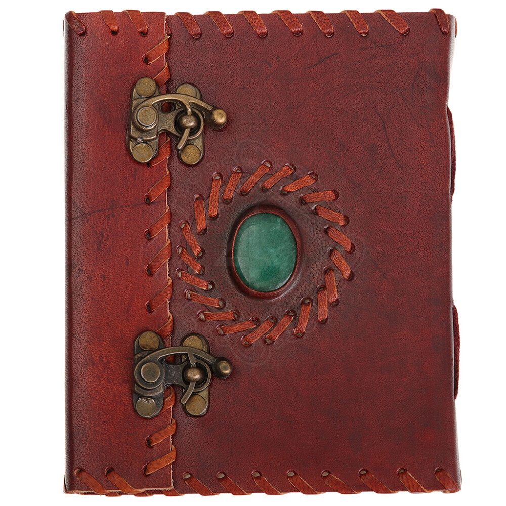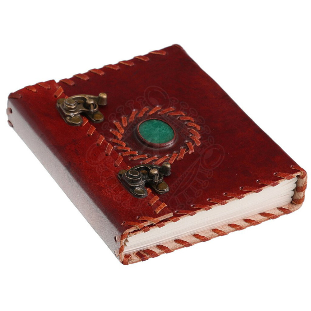 Handgefertigtes Leder-Tagebuch mit Stein und Verschluss