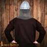 - Kettenbrünne: Anders als herkömmliche Nasalhelme hat dieser Helm eine Kettenbrünne, die Hinterkopf und Nacken schützt. Die Ringe mit einem Innendurchmesser von 10 mm und einer Dicke von 1,6 mm sind nicht vernietet, sondern fest verschlossen und bieten einen guten Schutz.