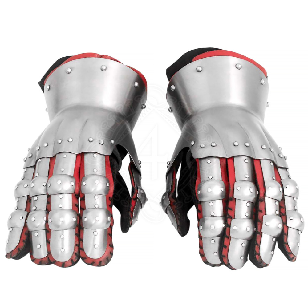 Die Handschuhe sind handgefertigt aus 1,6 mm starkem Baustahl. Die Finger werden durch ein System kleiner, vernieteter Schuppen (sogenannte Gadlings) geschützt, die der Bewegung der Hand beim Ballen zur Faust folgen. Die Stahlplatten sind mit rotem Leder unterlegt, was den Handschuhen ein wildes und luxuriöses Aussehen verleiht.