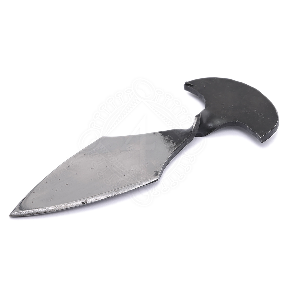 • Klinge: Sie hat die Form einer dreieckigen, beidseitig geschliffenen Spitze mit einer stumpfen Schneide (ca. 1 mm), ideal für dekorative Zwecke.