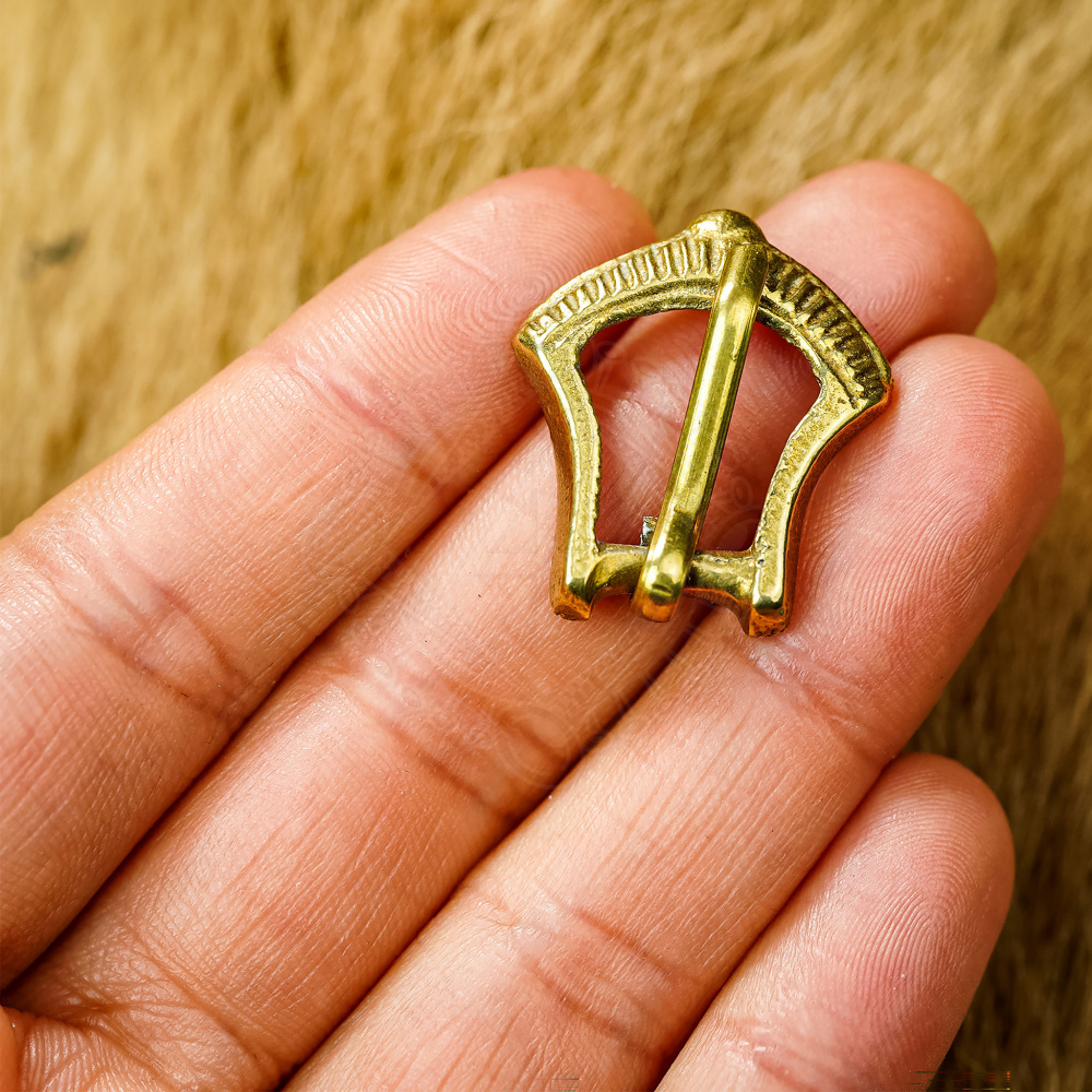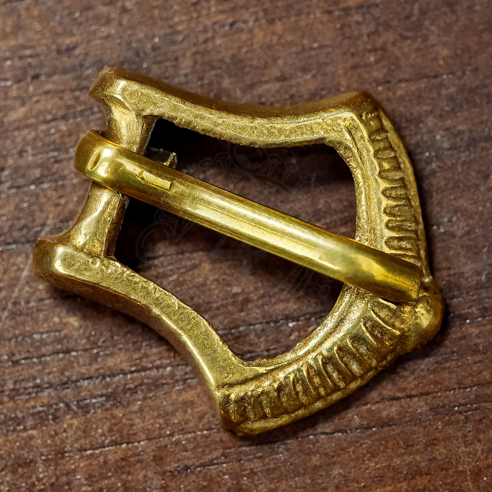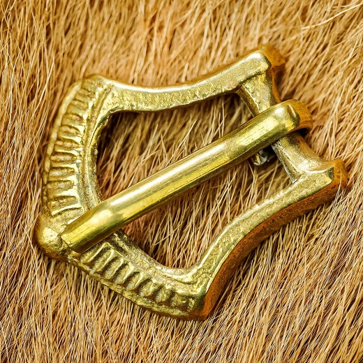 Solche Messingschnalle wurde an Rüstungsgurten oder Gürteltaschen und anderen Lederarbeiten verwendet. Weitere Produktinformationen ...