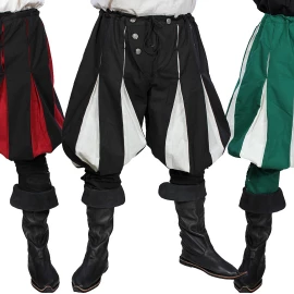 Diese mittelalterlichen Beinlinge (auch "ein paar Hosen" genannt) sind aus Baumwollstoff gefertigt und werden mit Nestelbändern geliefert. Sie sind im schrägen Fadenlauf zugeschnitten, wodurch sie leicht elastisch werden. Dies erhöht den Tragekomfort enorm. Der Saum ist mit einem Schlitz versehen, so kann man diesen leicht in die Schuhe stecken. Durch die Schnittführung sind diese Beinlinge zeitlich dem Hochmittelalter zuzuschreiben. Weitere Produktinformationen ...