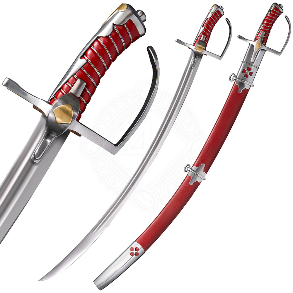 Mit dem auffälligen drahtumwickelten Griff aus rotem Leder, der passenden Lederscheide und den für personalisierte Gravuren freigelassenen Einlegearbeiten steht die Optik dieses Schwertes seiner Funktionalität in nichts nach. Der polnische Säbel hat zweifellos das Zeug dazu, zum Herzstück jeder Sammlung eines jeden HEMA-Kampfkünstlers oder Klingenliebhabers zu werden.