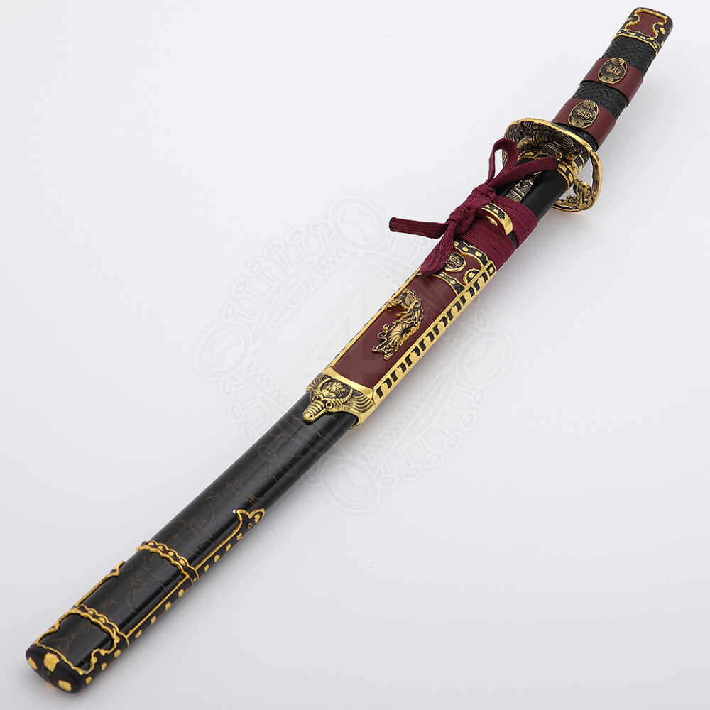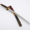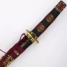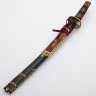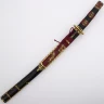 - Der Griff von diesem Katana ist aus rot lackiertem Holz