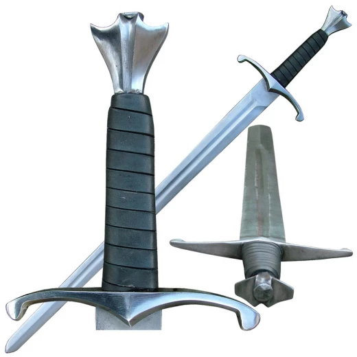Die Schaukampfversion von diesem Schwert hat eine Schlagkante von 2-3mm und eine abgerundete Klingenspitze. Ein Schwert mit diesen Eigenschaften kann zum Schaukampf verwendet werden.