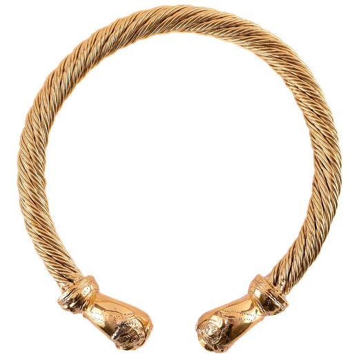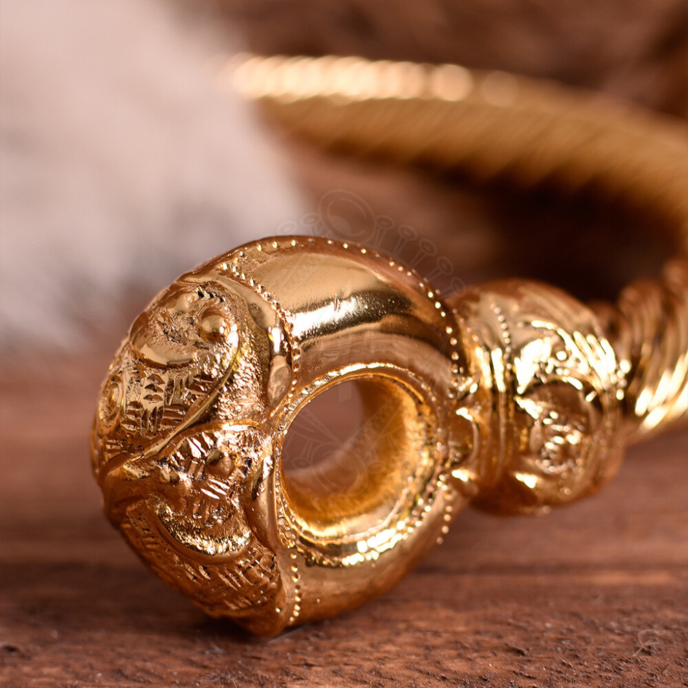 Ein Torques, auch Wendelring genannt, ist ein Halsring aus Metall, der in der europäischen Eisenzeit in vielen Kulturen verbreitet war. Für die Kelten scheint der goldene Torques ein wichtiger Gegenstand gewesen zu sein, der seinen Träger als Person von hohem Rang zu erkennen gab, und viele der schönsten Kunstwerke der alten Kelten sind in der Tat Wendelhalsringe. Weitere Produktinformationen ...