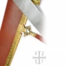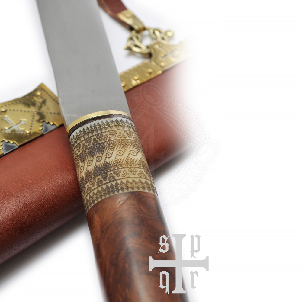 Es wird darauf hingewiesen, dass die Klinge scharf und voll funktionsfähig ist. Daher ist dieser Skramasax für den Schaukampf nicht geeignet und nur als Sammlerstück bzw. Dekorationsobjekt konzipiert!