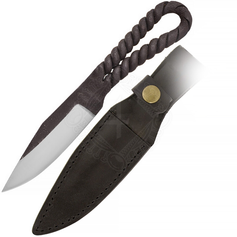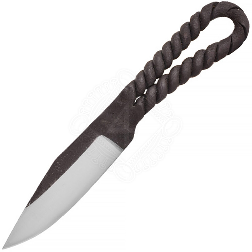 Schönes und praktisches Gebrauchsmesser, handgeschmiedet aus rostfreiem Stahl. Inklusive der abgebildeten Lederscheide. Weitere Produktinformationen ...