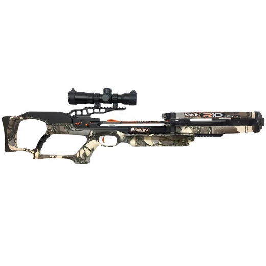Mit einem unglaublichen Achsabstand von 6 Zoll im gespannten Zustand präsentiert Ravin Armbrüste im gewehrartigen Design, die signifikant kleiner und schmaler als jede andere Armbrust sind. Das System erlaubt es dem Bolzen frei zu schweben, der somit keine Energie durch Reibung verliert und Geschwindigkeiten bis zu 400 fps generiert.