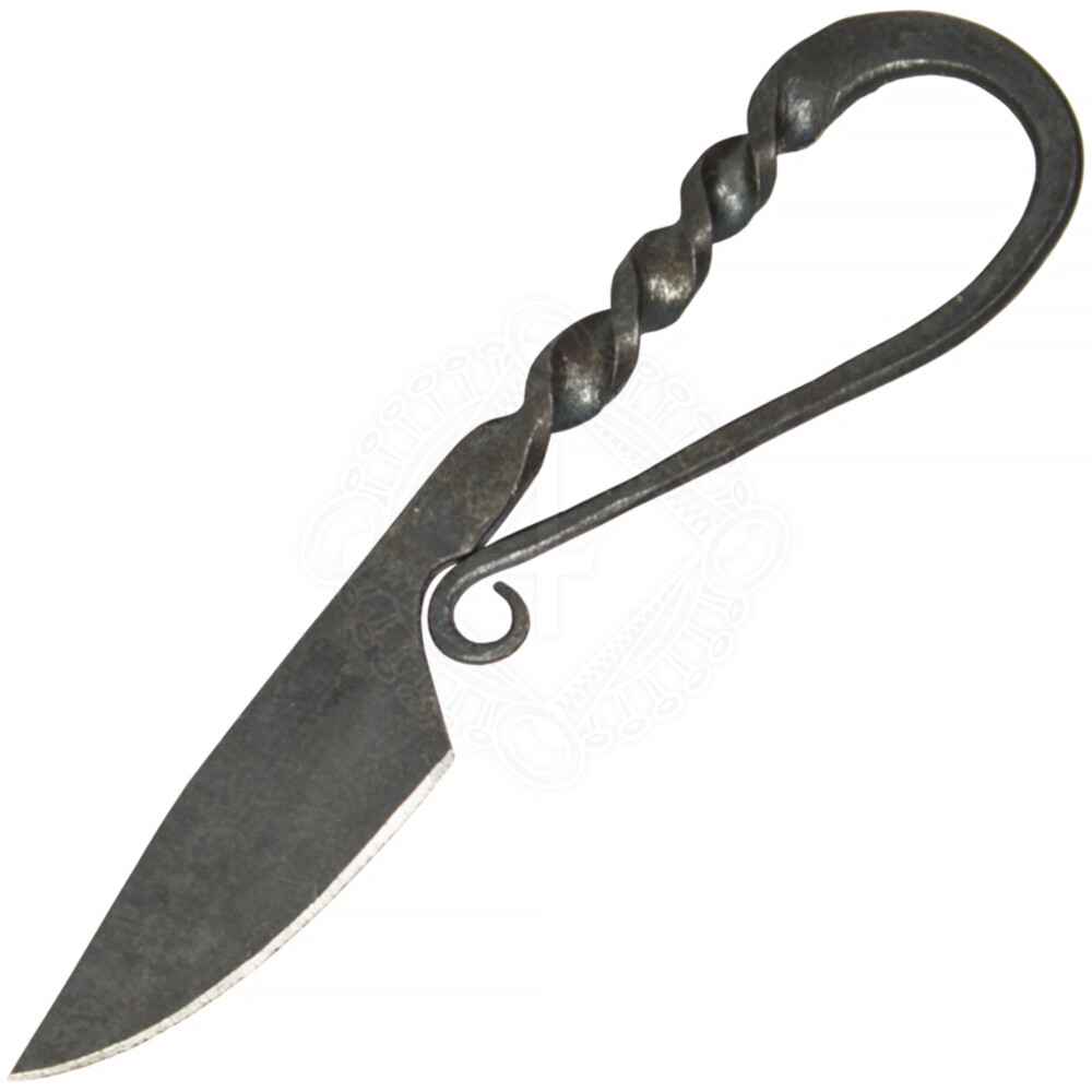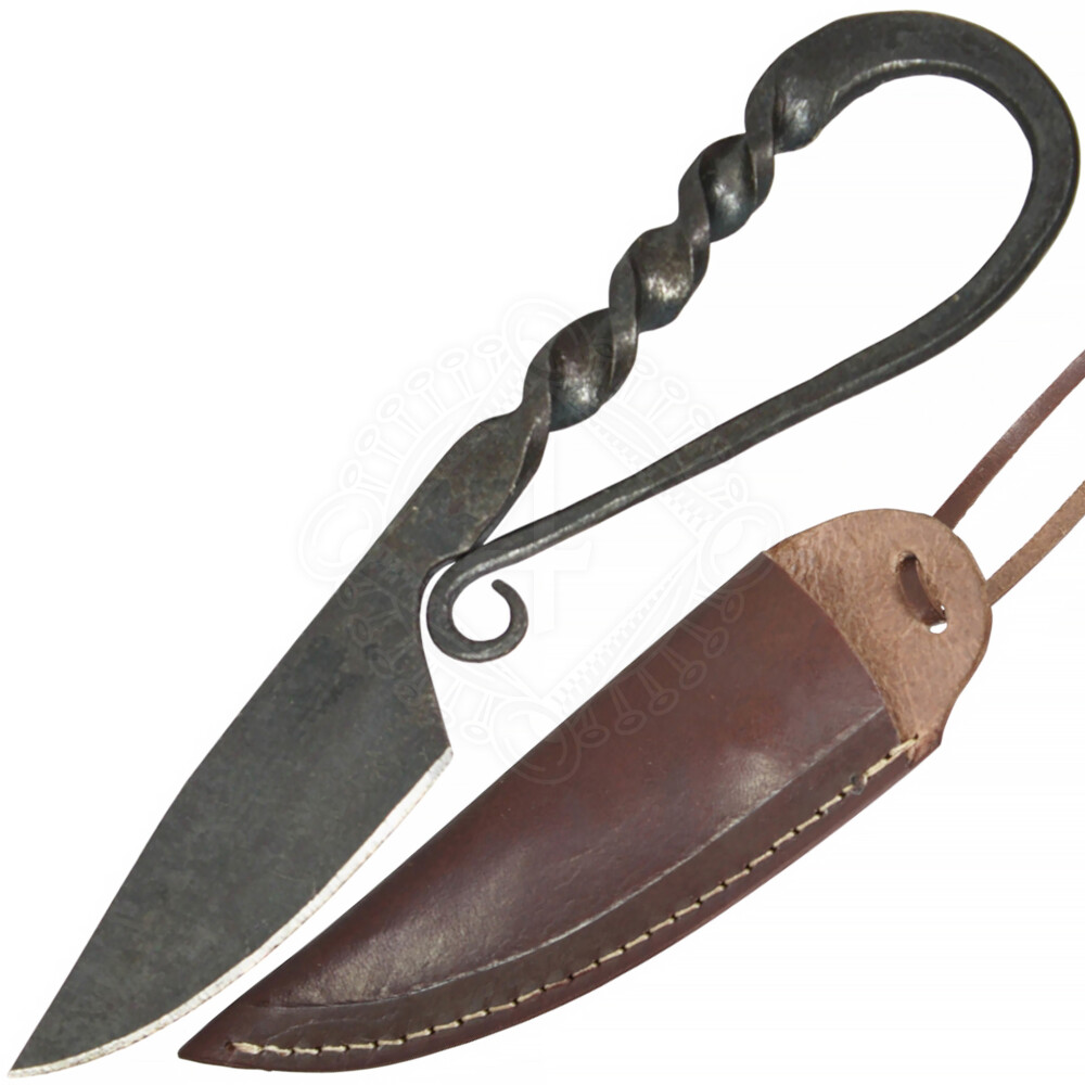Ein klassisches Mittelaltermesser. Sowohl die Klinge, als auch der elegant geschwungene Griff sind aus geschmiedetem Kohlenstoffstahl. Lieferung samt hochwertiger Lederscheide. Weitere Produktinformationen ...
