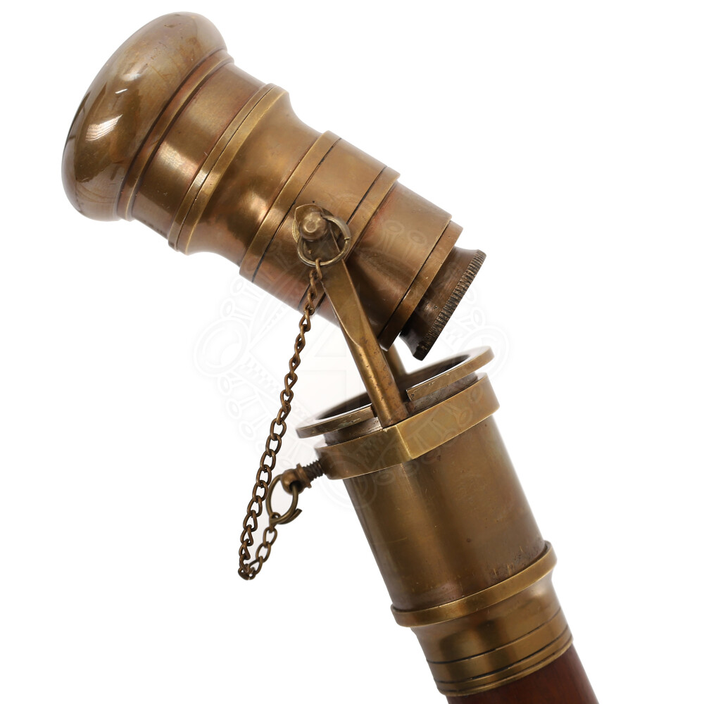 Erlebe den Geist des Abenteuers und der Eleganz des 19. Jahrhunderts mit diesem einzigartigen Spazierstock, der mehr verbirgt als nur eine Stütze beim Gehen. Auf den ersten Blick ist er ein stilvolles Accessoire aus edlem indischem Eukalyptusholz mit polierten Messingelementen. Sein wahres Geheimnis offenbart sich jedoch, sobald du den Griff abschraubst. Im Handumdrehen verwandelt sich der Knauf in ein funktionsfähiges Teleskop, bereit, ferne Horizonte näher zu bringen, ob auf See oder an Land. Dieser Stock ist die perfekte Nachbildung der Accessoires, die von Seekapitänen und Gentlemen getragen wurden, für die er sowohl ein Statussymbol als auch ein praktisches Werkzeug war. Weitere Produktinformationen ...