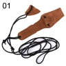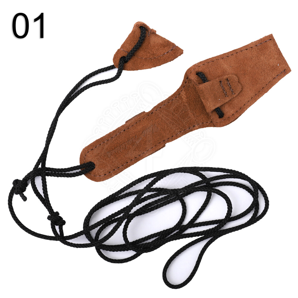 - Modelle für Langbögen (Straight Bows): Die Versionen (gekennzeichnet als 2 und 4) sind mit zwei Ledertaschen für beide Bogenenden ausgestattet, da gerade Bögen nicht die notwendige Krümmung für die Nutzung eines Reibungssattels aufweisen.
