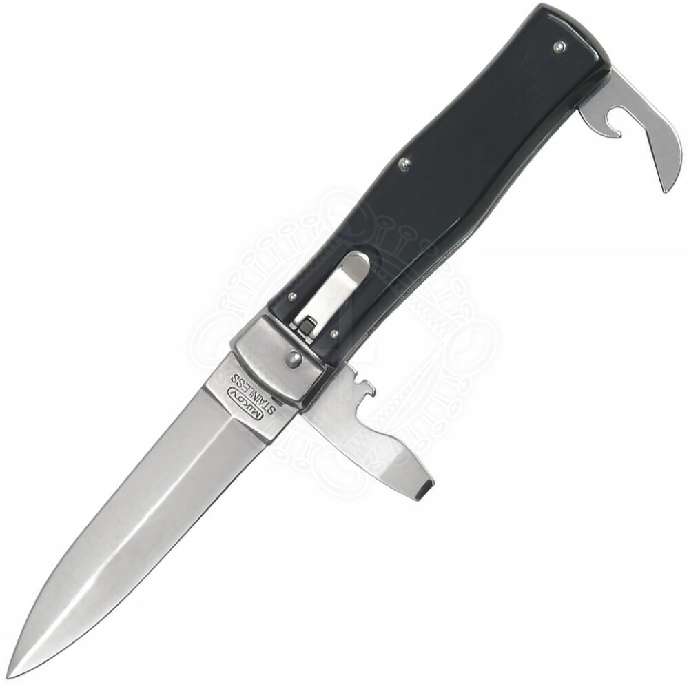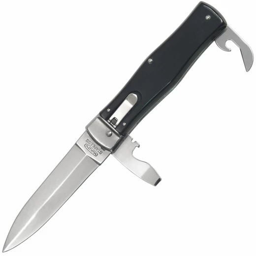 Das Messer wird mit 1-4 Werkzeugen gefertigt. Zum Beispiel mit Hauptklinge, Säge, Dosenöffner oder Flaschenöffner mit Schraubendreher, Korkenzieher und Nut zum einfachen Abisolieren von Kabeln.