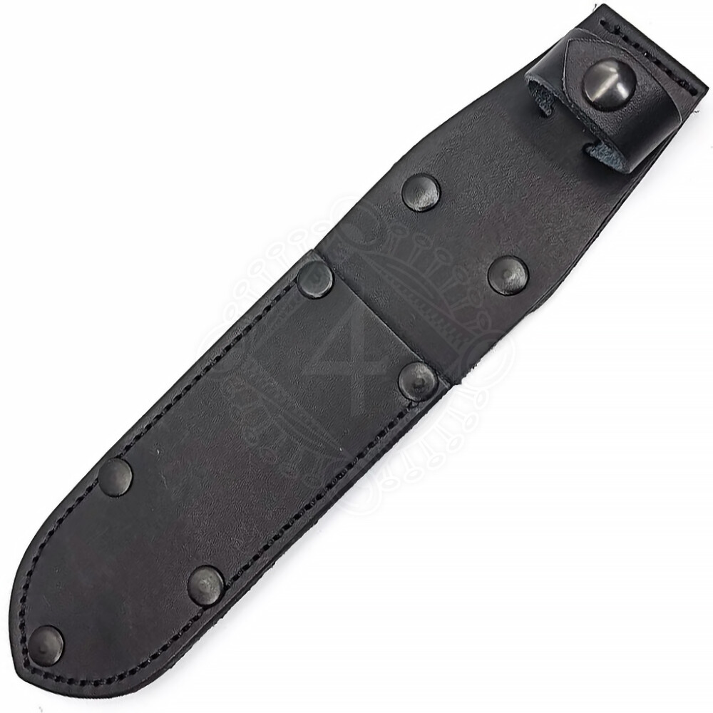 Schwarzes Lederetui ohne Zubehörtasche und ohne Metallplatte, die das Herausfallen des Dolches aus der Scheide verhindert. Weitere Produktinformationen ...