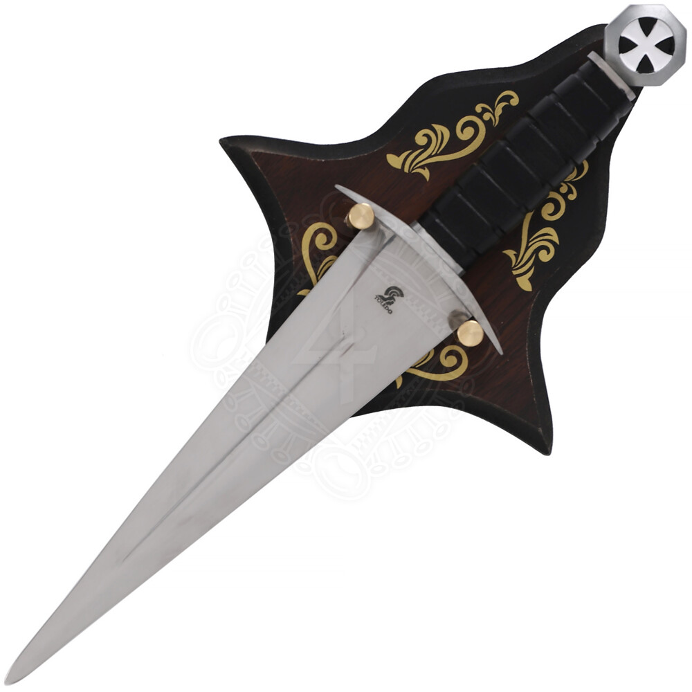 Dieser Johanniterdolch ist ein Produkt des weltberühmten Herstellers Repliken historischer Blankwaffen - Art Gladius aus der geschichtsträchtigen Stadt Toledo in Spanien. Er hat eine Klinge aus glänzendem Edelstahl und eine schwarze Lederscheide (gegen Aufpreis erhältlich). Weitere Produktinformationen ...