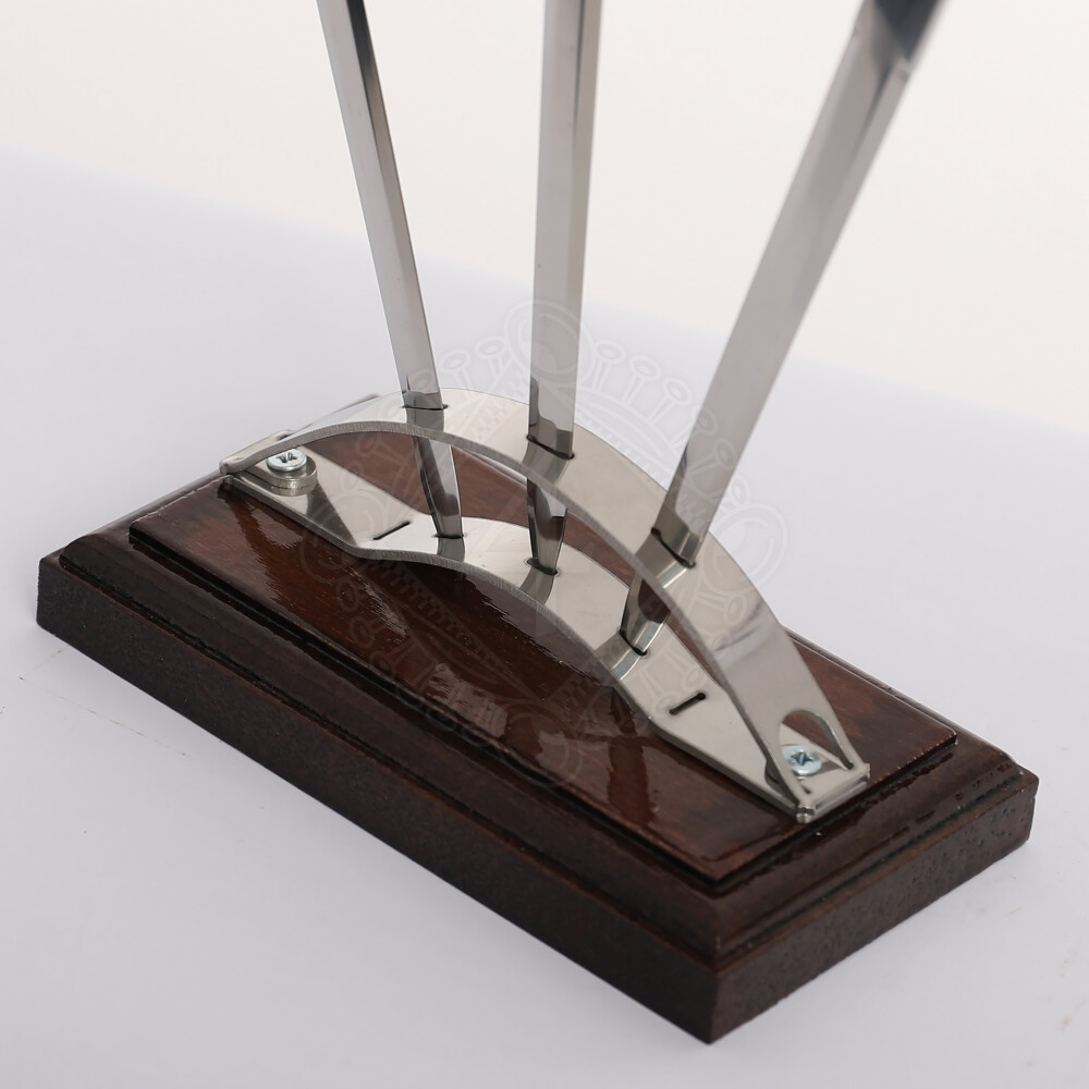 Ständer aus Holz und Metall für die Präsentation der exklusiven Kollektion "Historische, fantastische und legendäre Brieföffner", die von den Handwerksmeistern von MARTO hergestellt wurde. Ein Ständer mit Holzsockel. Metallbogen zur Befestigung von Brieföffnern. Geeignet für 3 Brieföffner von MARTO. BRIEFÖFFNER NICHT ENTHALTEN! Weitere Produktinformationen ...