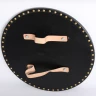 - Auf der Schild-Rückseite sind zwei Halteriemen aus Leder befestigt