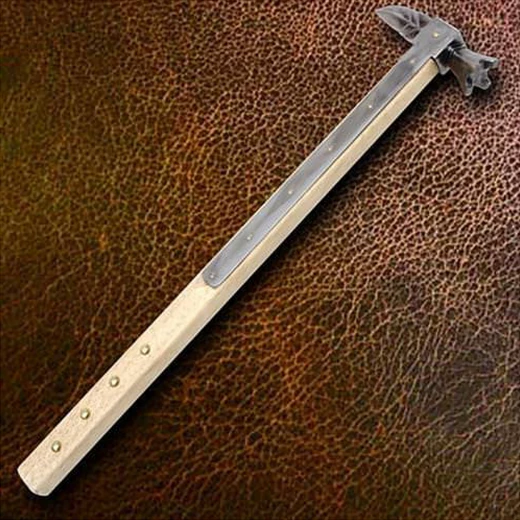 Die Verbreitung von Plattenpanzern im mittelalterlichen Europa wurde von der Entwicklung zerschmetternder Waffen wie diesem Kriegshammer überschattet. Da Schwerter gegen Plattenpanzer praktisch nutzlos waren, benutzten berittene Ritter kurze Hämmer, Äxte und Streitkolben, um den verbesserten Schutz eines Gegners zu besiegen. Diese schöne, eindrucksvolle Waffe ist einem Vorbild nachempfunden im Germanischen Nationalmuseum in Nürnberg. Der Stahlkopf ist mit Stahllaschen am Hartholzschaft befestigt. Messingnägel sorgen für sicheren Halt. Weitere Produktinformationen ...
