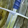 2xDieses Schwert eignet sich hervorragend für Anfänger und leichte Fechtübungen. Die Klinge dieses schönen Schwertes ist aus hochwertigem Karbonstahl gefertigt, bis zum Knauf durchgeschmiedet und am Griffende doppelt verschraubt. Der Griff hat eine blaue Lederwicklung. Parierstange aus handgeschmiedetem Kohlenstoffstahl! Ohne Garantie! Weitere Produktinformationen ...