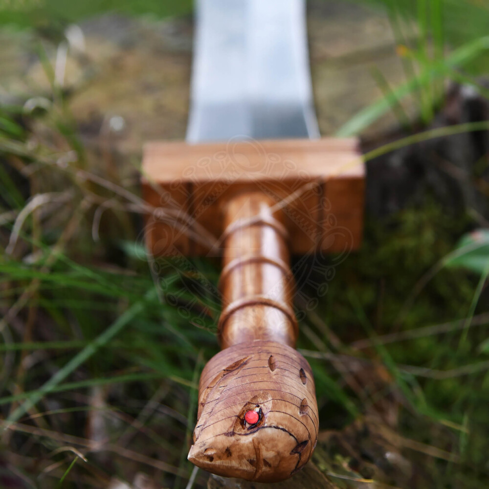 Eine passende Scheide aus Holz mit Lederbezug und Messingbeschlägen ist im Lieferumfang enthalten.