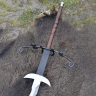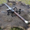 Das Schwert besitzt eine lederumwickelte Fehlschärfe. Der Griff besteht aus Hartholz. Die ungeschärfte Klinge ist aus Karbonstahl gefertigt und besitzt zwei kräftige Parierhaken.