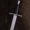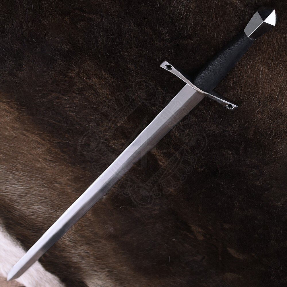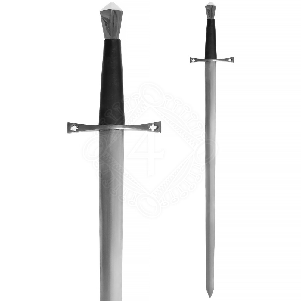 Die Kohlenstoffstahlklinge dieses schönen Schwertes ist bis zum Knauf durchgeschmiedet und am Griffende doppelt verschraubt. Der Griff verfügt über eine vernähte Lederwicklung. Dieser mittelalterliche Einhänder zeichnet sich durch die gerade Parierstange aus, die dem Schwert die typische Kreuzform verleiht. Das Kreuz als Symbol spiegelt sich bei diesem Schwert zudem in der kreuzförmigen Aussparung an beiden Enden der Parierstange wider. Die Klinge ist nicht geschärft. Weitere Produktinformationen ...
