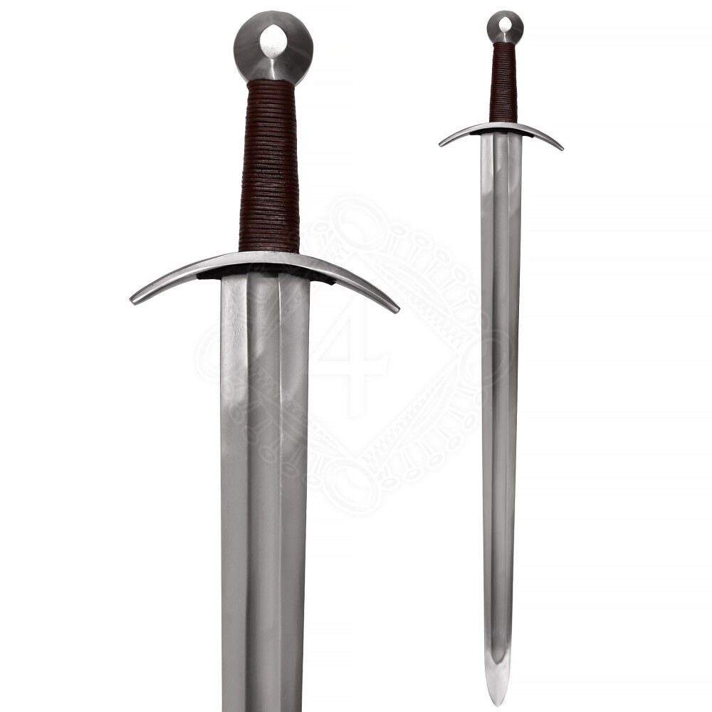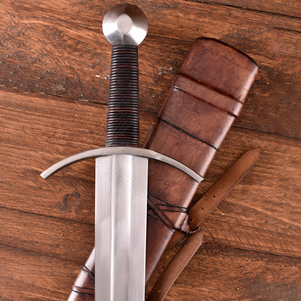 Nachbildung eines hochmittelalterlichen Einhänders mit typischem Scheibenknauf, welcher einen abgesetzten Rand in Tränenform besitzt. Diese Art Schwerter wurde bereits von den Normannen verwendet und fand kurz darauf ihren Einsatz bei den Kreuzzügen zur Befreiung des Heiligen Landes. Weitere Produktinformationen ...