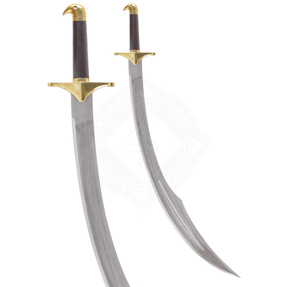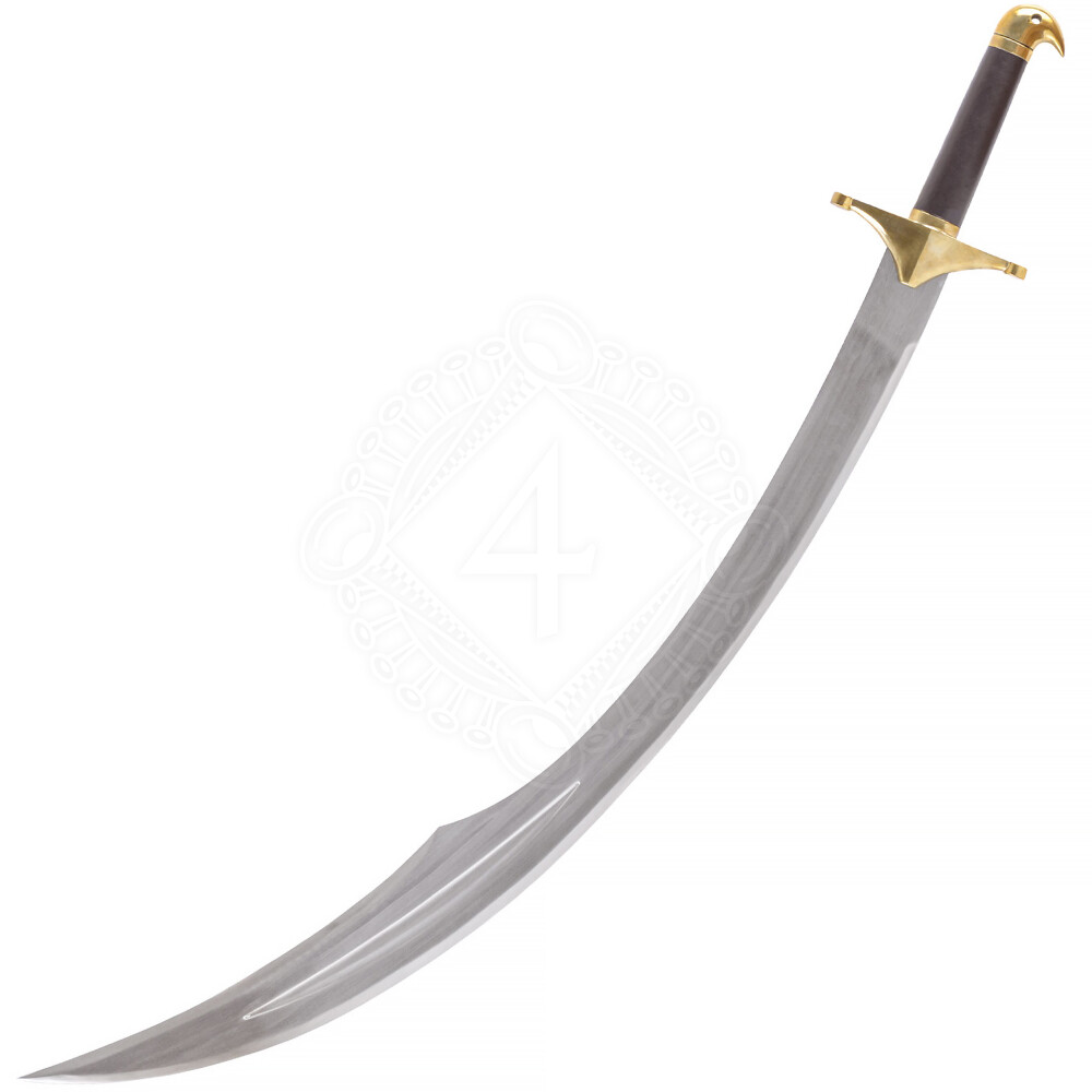 Der Scimitar ist ein Säbel vorderasiatischen Ursprungs. Ab ca. 700 n. Chr. drangen zunehmend Stämme muslimischer Herkunft in den Mittelmeerraum ein. Mit seiner tief geschwungenen Klinge lässt das schöne Stück die Kämpfe zwischen diesen Sarazenen genannten Orientalen und den europäischen Kreuzrittern wieder aufleben. Der Griff aus Hartholz und der Knauf in Form eines Habichtkopfes sind dem Original in typischer Weise nachempfunden. Dieser wunderschöne Säbel ist ein nahezu unverzichtbares Requisit für die Liebhaber des orientalischen Tanzes. Hergestellt von Hanwei. Weitere Produktinformationen ...