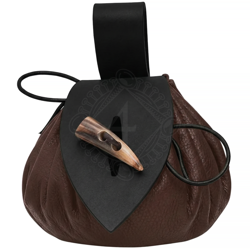 Zweifarbige mittelalterliche Leder-Gürteltasche mit authentischem Hornknebel - Outlet